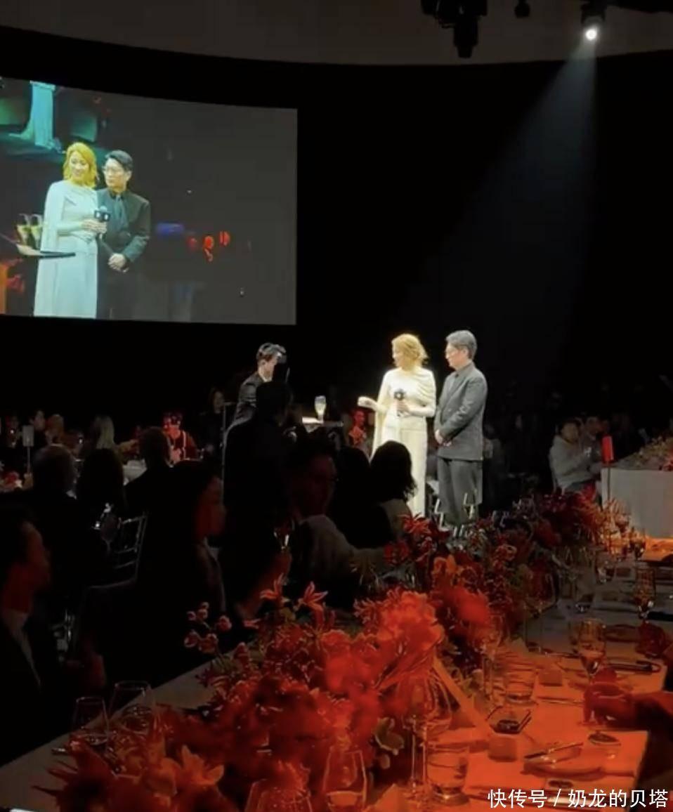 现年43岁的徐子淇许久未曾露面,相较于往昔,如今她看上去丰腴了些许,只是头发依旧如往常那般是金色。徐子淇当晚着装得体,身着一套米黄色套装,下身为阔腿裤,上身为修身长袖,还搭配着一条拖地披肩。只见徐子淇在台上始终与李家诚配合,关照来自不同方位的嘉宾,随后夫妻二人一同举杯向其他嘉宾敬酒,满脸笑意。客观来讲,台上的徐子淇仪态端庄且大方,充分展现出主席夫人的优雅气质。