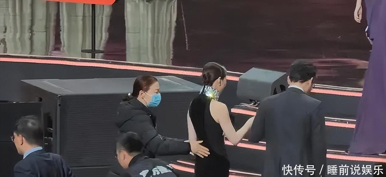 说回摔倒这事,佘诗曼不是唯一一个中招的。 娜扎在领奖后下台时也滑倒了。